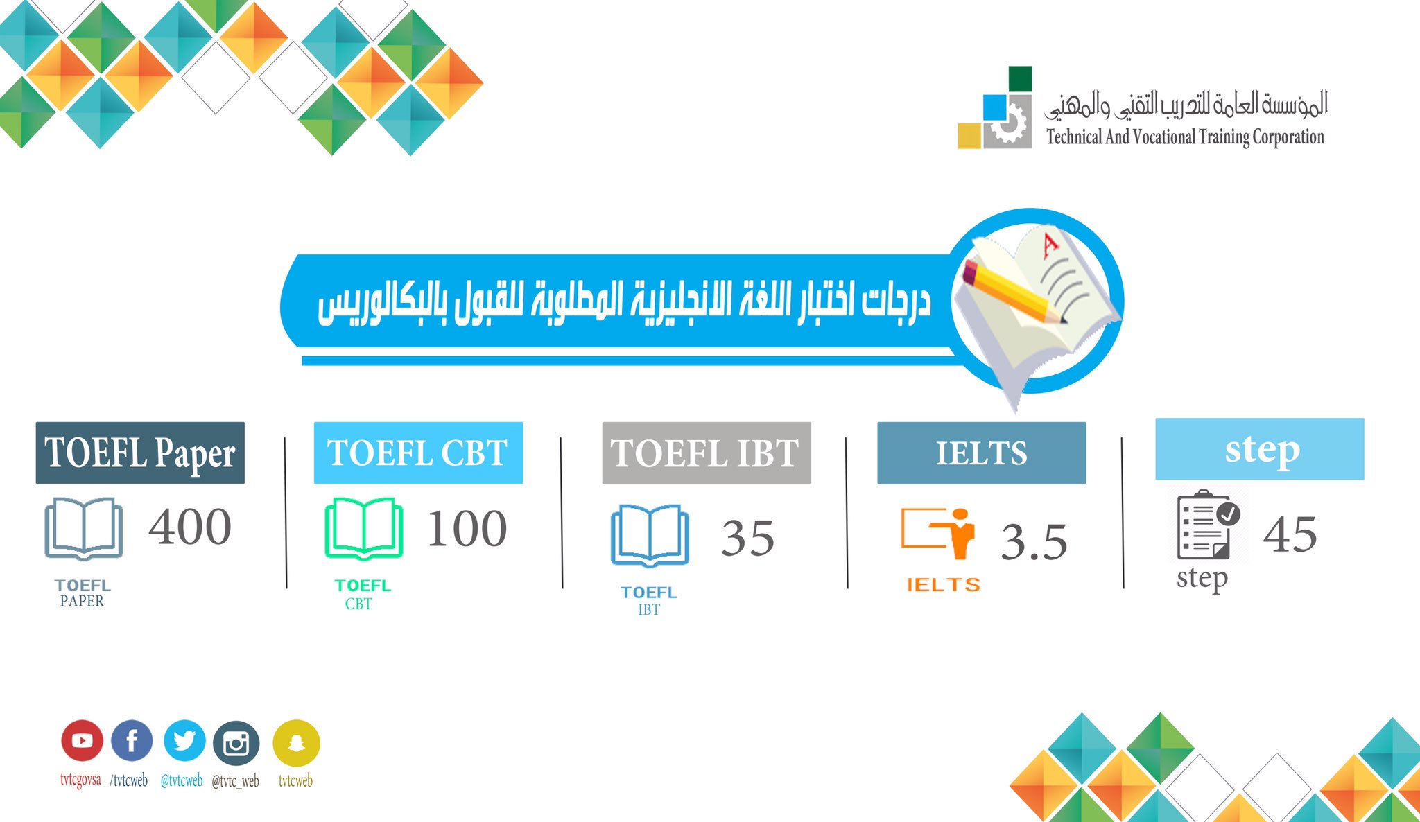 رسميا لا توجد وسيلة لتحويل درجة اختبار واحد إلى آخر أو درجة اختبار لنظام مستوى لذلك إذا كنت بحاجة إلى درجة 8 5 في أيلتس على سبيل المثال سيكون عليك اخذ اختبار أيلتس. وهناك ثلاثة انواع منه pbt ibt مع العلم بأن اختبار التوفل itp غير معتمد بالجامعة حيث انه اختبار تجريبي لا يصلح للتقدم للجامعات صلاحية الاختبار سنتين. من كم درجة اختبار ستيب. الدرجات المعادلة للدرجات المطلوبة في اختبار ستيب ايلتس توفل الدرجات المعادلة للدرجات المطلوبة في اختبار ستيب ايلتس توفل الدرجات المعادلة للدرجات المطلوبة في اختبار ستيب ايلتس توفل.