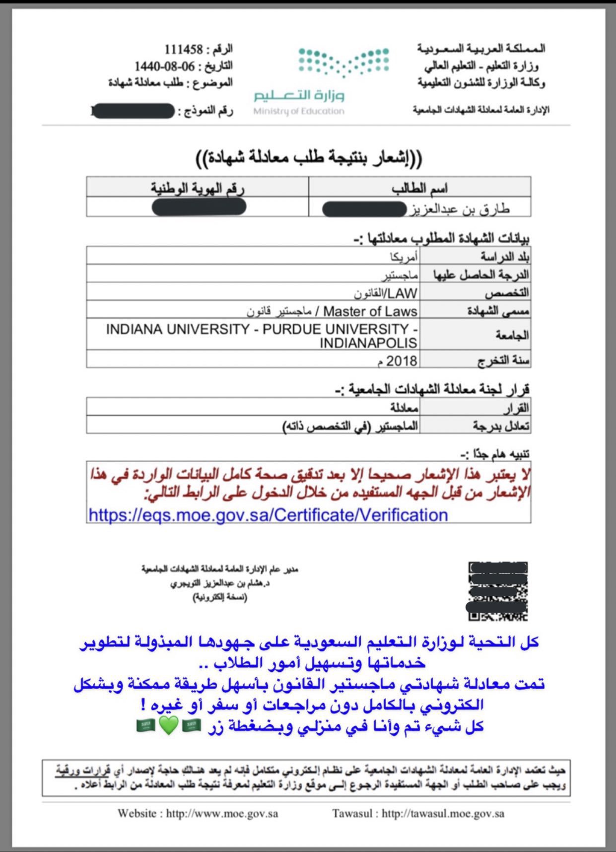 لجنة معادة الشهادات الجامعية بو زارة التعليم التعليم الجامعي هي الجهة المخولة بالنظر في معادلة الشهادات الجامعية والعليا في ضوء ما لديها من معايير ويتم تقييم وفحص الشهادات الواردة للجنة من الدارسين السعوديين في.